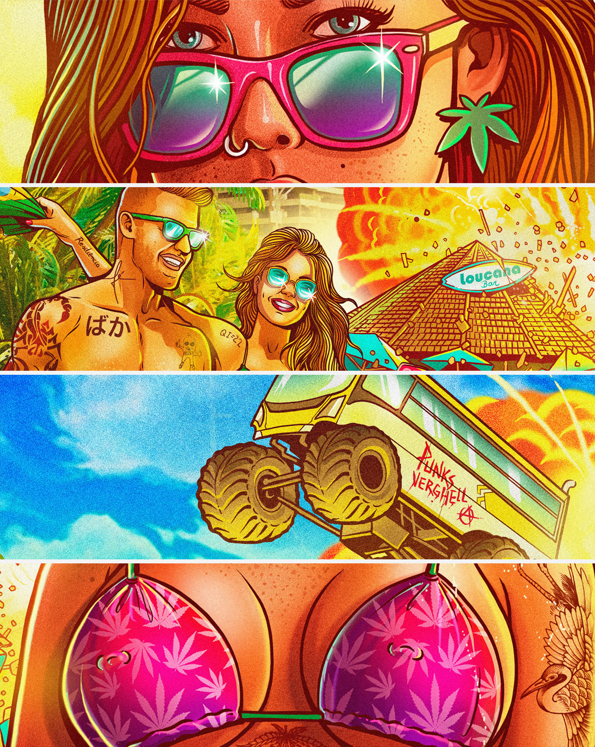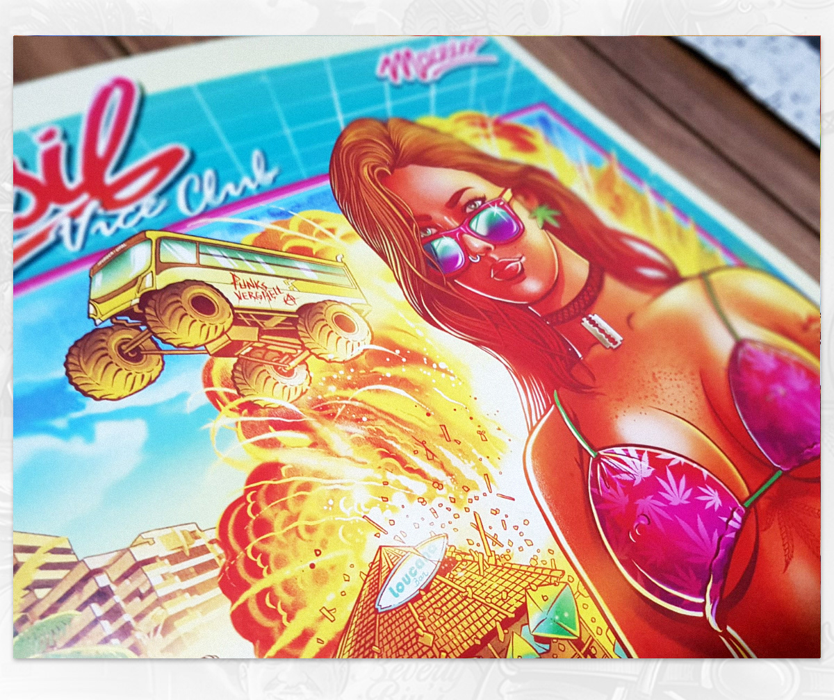 Illustrations for Maceió Vice Club', a fictional poster inspired by 80s movies.